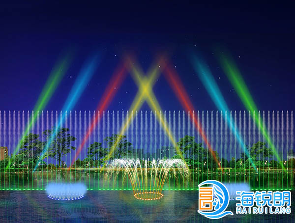 湖面彩色音樂數(shù)碼噴泉工程分控效果圖